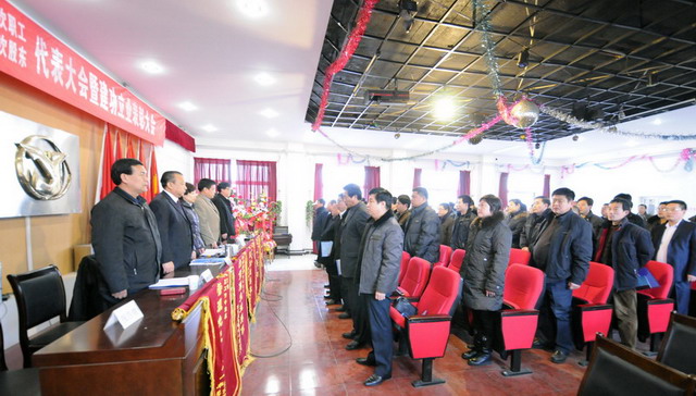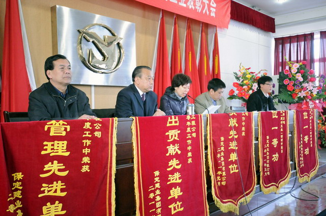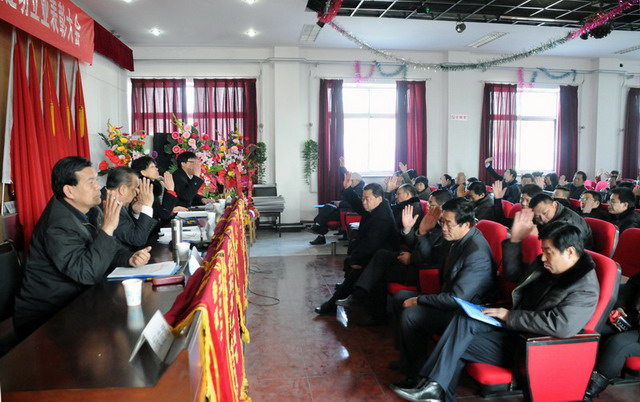 大會(huì)在莊嚴(yán)的國歌聲中拉開了序幕,首先由集團(tuán)公司副總經(jīng)理要保林做《二零一零年度工作總結(jié)(草案)》,總會(huì)計(jì)師于廣志做《二零一零年度財(cái)務(wù)工作報(bào)告》,監(jiān)事會(huì)主席閆雙彥做《二零一零年度財(cái)務(wù)審核報(bào)告》,副總經(jīng)理谷進(jìn)寶做《二零一零年工作安排意見的報(bào)告(草案)》,工會(huì)主席黃春玲做《二零一零年度職代會(huì)工作總結(jié)及二零一一年度工作安排報(bào)告(草案)》。隨后全體與會(huì)代表對上述報(bào)告進(jìn)行舉手表決,均全票通過。會(huì)后,集團(tuán)公司董事長兼黨委書記張?zhí)m柱同志做重要講話,總結(jié)了集團(tuán)公司在二零一零年工作中的經(jīng)驗(yàn)與不足,激勵(lì)廣大職工、股東代表在新的一年里為企業(yè)的快速發(fā)展繼續(xù)作好排頭兵、發(fā)揮表率作用,與廣大員工一起為集團(tuán)公司貢獻(xiàn)力量。